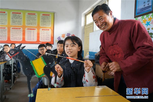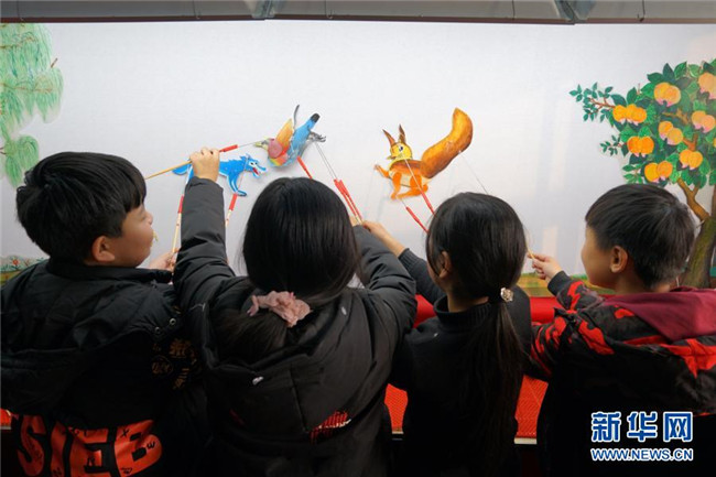 當(dāng)日,在河北省沙河市,當(dāng)?shù)仄び皯蛩嚾俗哌M(jìn)沙河市西油村小學(xué),為學(xué)生們展演皮影藝術(shù)、傳授技藝。今年以來,河北省沙河市積極開展“非遺進(jìn)校園”活動,組織沙河皮影戲、孔明鎖、孫氏太極拳等非遺項目進(jìn)校園活動80多場。