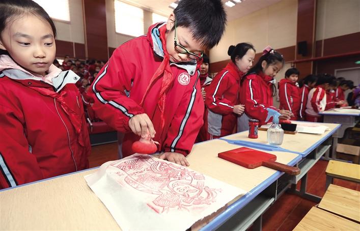 12月8日,西安關(guān)中民俗藝術(shù)博物院“優(yōu)秀傳統(tǒng)文化”大篷車開進西安市雁塔區(qū)紅星小學(xué)。通過聆聽關(guān)中民俗故事、積極參與互動問答、親手拓制木版年畫,孩子們對精彩的民俗文化產(chǎn)生了濃厚的興趣。