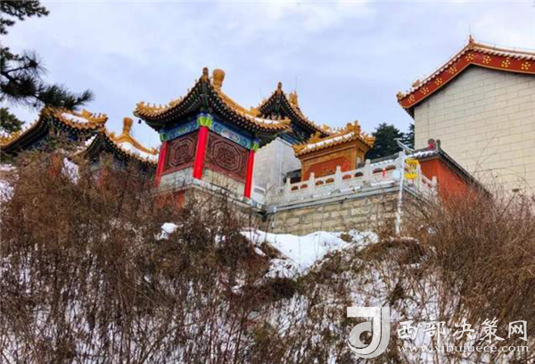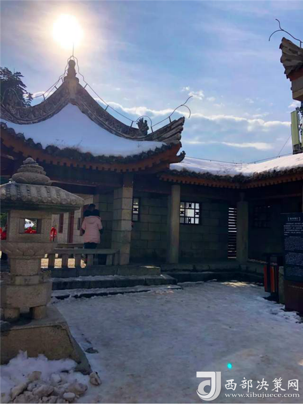 金天宮,建造得金碧輝煌,從遠處看白雪覆蓋下的道觀很惹眼……