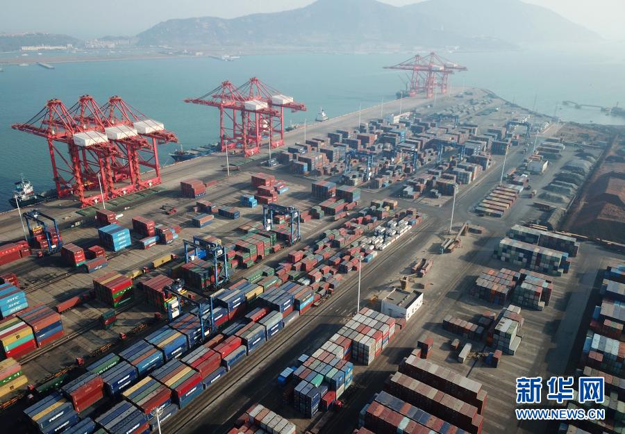 這是1月14日在江蘇連云港港拍攝的集裝箱碼頭(無人機照片)。新華社發(fā)(耿玉和 攝)