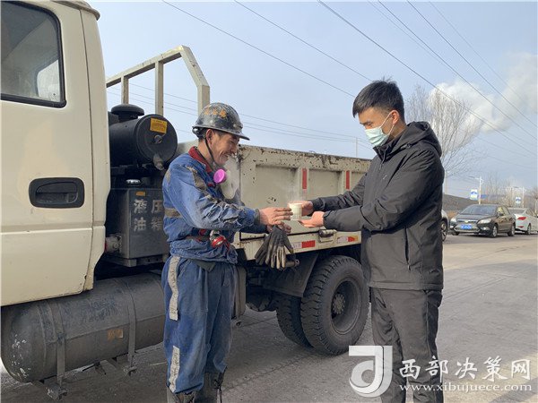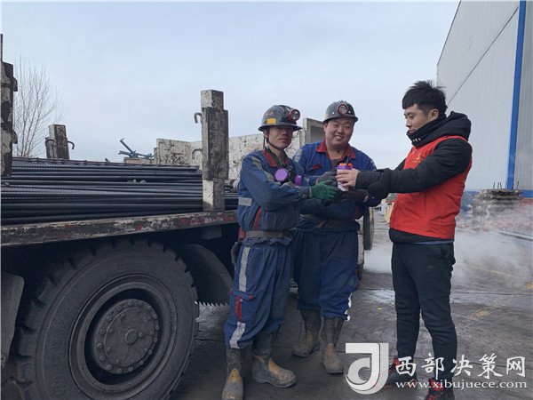 寒風阻擋不住一心為職工送溫暖的熱情,該支部黨員志愿者冒著嚴寒,為地面室外下料職工送上了一雙雙厚實保暖的手套、暖心的奶茶,囑咐他們注意保暖,預防感冒,特殊天氣更要提高防護意識,確保安全生產(chǎn)。