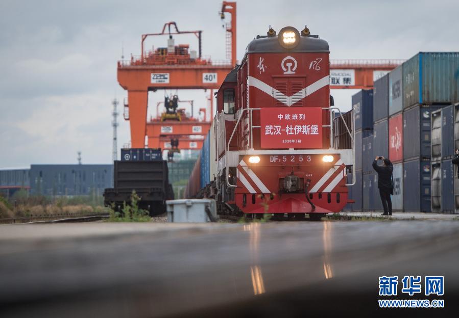 開往德國杜伊斯堡的中歐(武漢)班列從中鐵聯(lián)集武漢中心站駛出(2020年3月28日攝)。這是自疫情防控以來,從武漢開出的首趟中歐班列,標(biāo)志著中歐班列(武漢)恢復(fù)常態(tài)化運(yùn)營(yíng)。新華社記者 肖藝九 攝