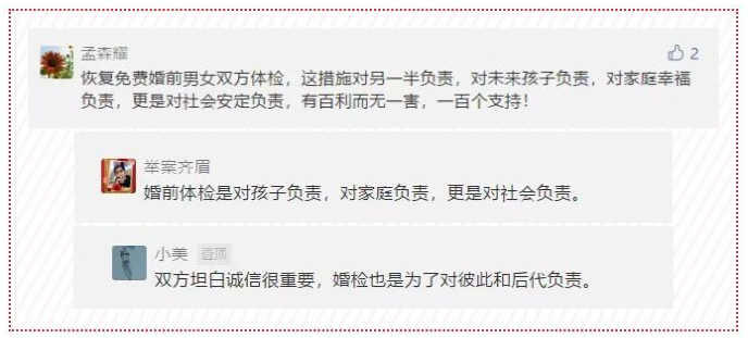 全國人大代表周洪宇建議,由國務(wù)院修改《婚姻登記條例》,將國家免費(fèi)孕前優(yōu)生健康檢查項(xiàng)目列入婚姻登記前置程序,將婚檢納入公共衛(wèi)生服務(wù)范疇,由政府支付婚檢基本項(xiàng)目費(fèi)用,由民政部聯(lián)合衛(wèi)健委實(shí)施,將婚檢率由目前的61.1%提升至100%,為新婚夫妻建立統(tǒng)一的出生缺陷風(fēng)險評估、分級、統(tǒng)計、追蹤服務(wù)的數(shù)據(jù)庫。國家財政部在“十四五”期間不妨增加婦幼保健和計劃生育公共服務(wù)支出,由國家醫(yī)保局指導(dǎo)各地醫(yī)保部門結(jié)合當(dāng)?shù)貙?shí)際,提高醫(yī)保對孕產(chǎn)婦報銷普通門診、住院分娩費(fèi)用額度。