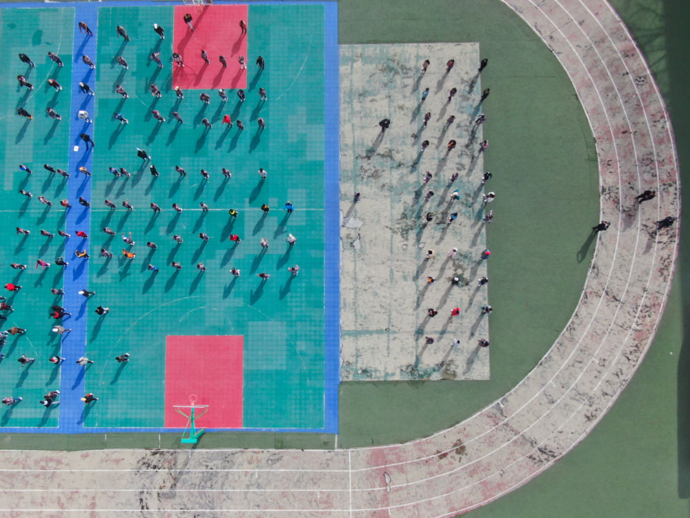 ↑ 在青海省玉樹藏族自治州八一孤兒學(xué)校,學(xué)生們在進(jìn)行課間活動(2020年4月3日攝)。 新華社記者 張龍 攝