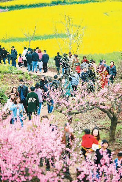“一朵油菜花”扮靚一個村的故事,在中國許多鄉(xiāng)村成為現(xiàn)實。賞花熱了,游客來了,村莊美了,形成良性發(fā)展。眾多有著賞花資源的鄉(xiāng)村,逐漸走上“農(nóng)旅結合、以農(nóng)促旅、以旅富農(nóng)”的發(fā)展之路,打造出各具特色的鄉(xiāng)村賞花游產(chǎn)品,讓原本“到此一游”式的賞花游,轉變?yōu)樾蓍e游、度假游,帶動了更多農(nóng)民增收、就業(yè)、返鄉(xiāng)創(chuàng)業(yè),真正形成“鮮花經(jīng)濟”。
