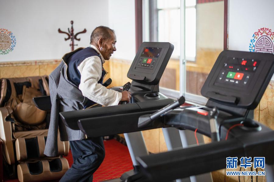 次旦在集中供養(yǎng)服務(wù)中心里鍛煉(3月19日攝)。