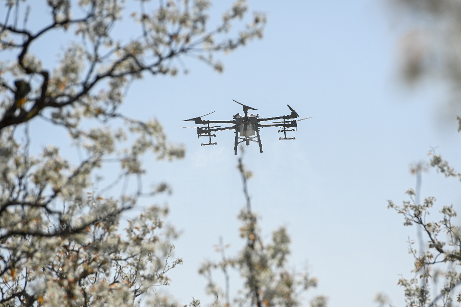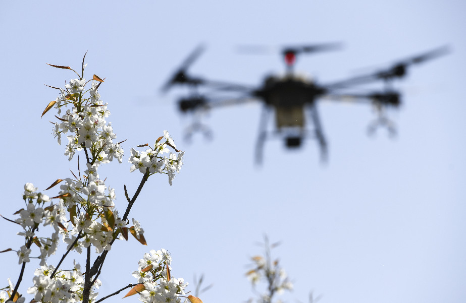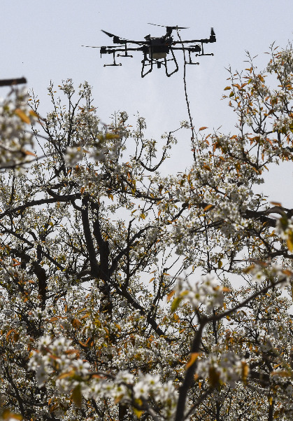 據(jù)中國(guó)農(nóng)業(yè)科學(xué)院蜜蜂研究所介紹,這種技術(shù)具有效率高、坐果勻和成本省等特點(diǎn)。1架無(wú)人機(jī)可在1小時(shí)內(nèi)為40畝果園授粉,效率是人工的50至60倍。采取蜂機(jī)協(xié)同作業(yè)高效液體授粉技術(shù)可使香梨每畝增產(chǎn)500公斤以上。目前,采用無(wú)人機(jī)給梨樹(shù)授粉成為越來(lái)越多梨農(nóng)的選擇。