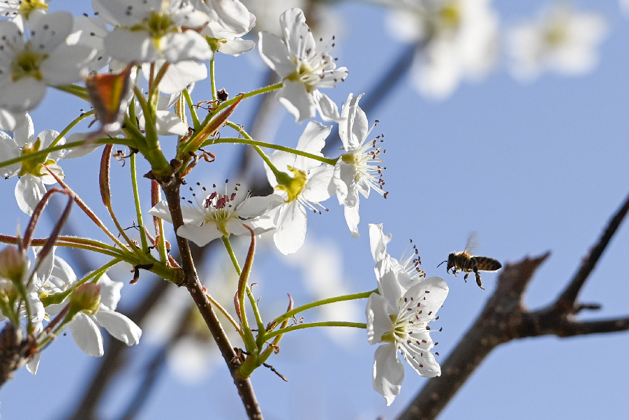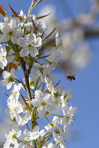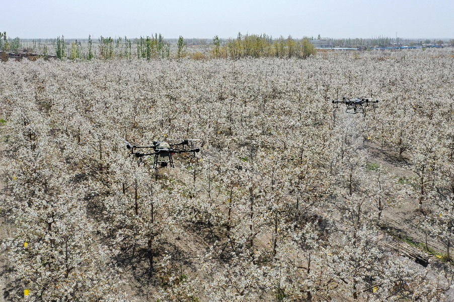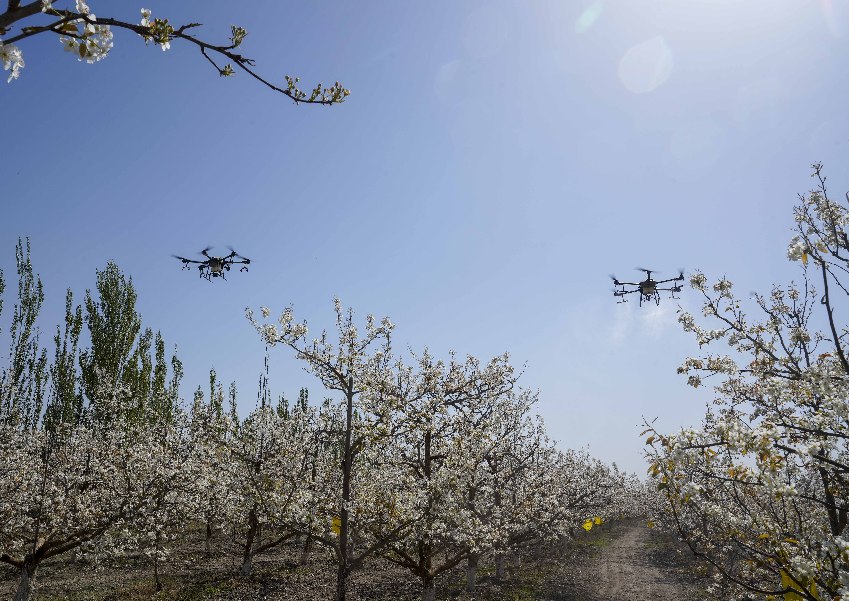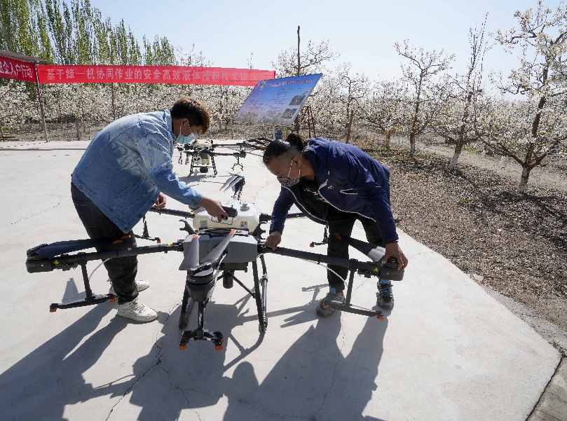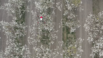 在新疆南疆等地,梨樹(shù)花期很短,且往往伴隨沙塵天氣,梨樹(shù)授粉作為梨產(chǎn)業(yè)發(fā)展中最為關(guān)鍵的一環(huán),以往通過(guò)人工授粉或者蜜蜂授粉進(jìn)行。隨著人工成本不斷增加以及產(chǎn)業(yè)健康發(fā)展需要,以蜜蜂采集的高活性授粉用花粉聯(lián)合無(wú)人機(jī)噴施的蜂機(jī)協(xié)同作業(yè)高效液體授粉技術(shù)開(kāi)始出現(xiàn)。