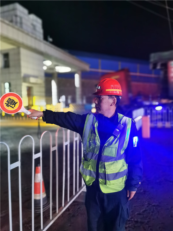 作為銷售中心發(fā)運區(qū)安保人員,安全工作不管在什么時候都絲毫松懈不得,時時刻刻嚴(yán)抓嚴(yán)查安全隱患,保安馬文龍正在指揮車輛減速慢行和檢查司機是否有酒駕行為。