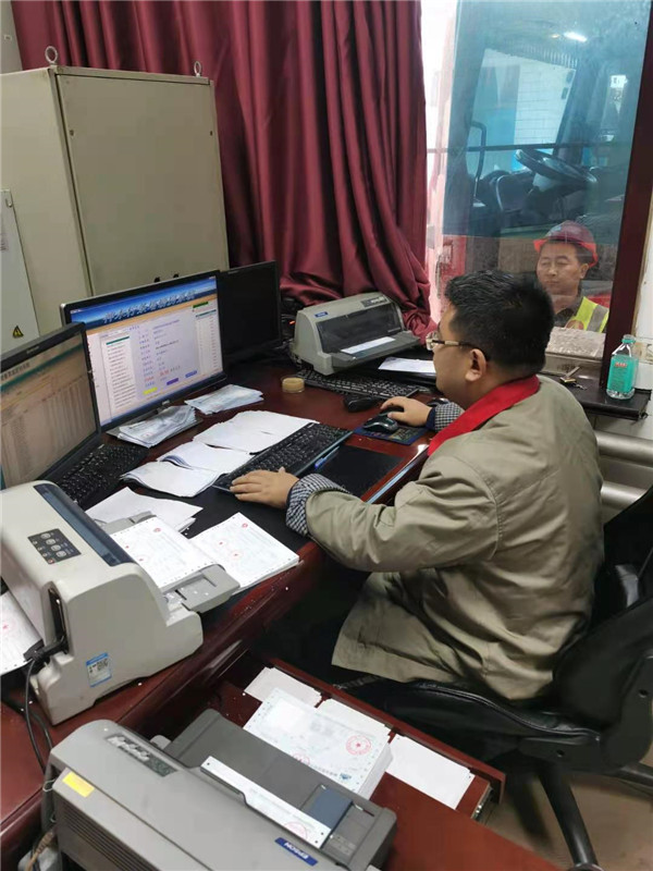 司磅員魏涵正在專心致志進(jìn)行車輛稱重計量打票作業(yè),認(rèn)真核對車輛信息,確保做到過磅速度快,票據(jù)準(zhǔn)確無誤。