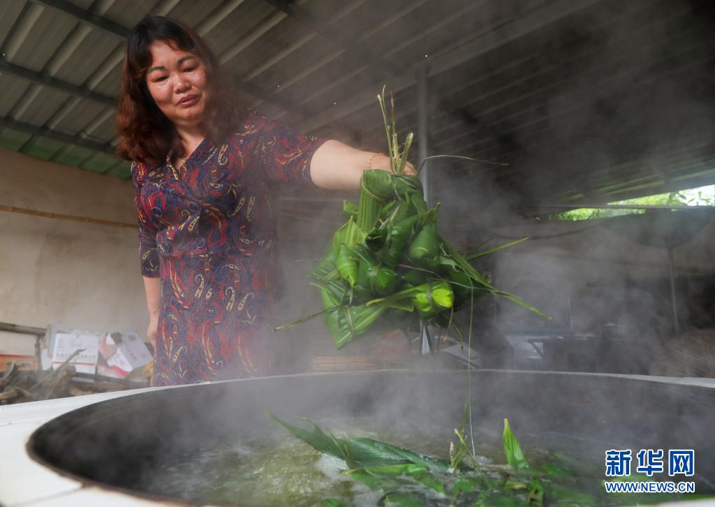 6月2日,貴州省銅仁市玉屏侗族自治縣亞魚鄉(xiāng)郭家灣村村民在煮粽子。新華社發(fā)(胡攀學(xué)攝)