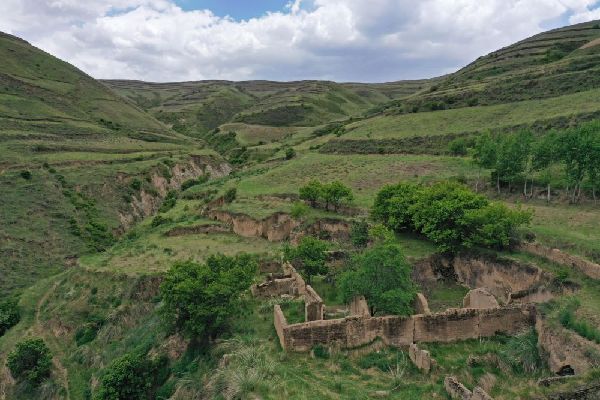 寧夏固原市涇源縣大灣鄉(xiāng)移民曾經(jīng)生活的遺跡已被綠色覆蓋(6月4日攝)。