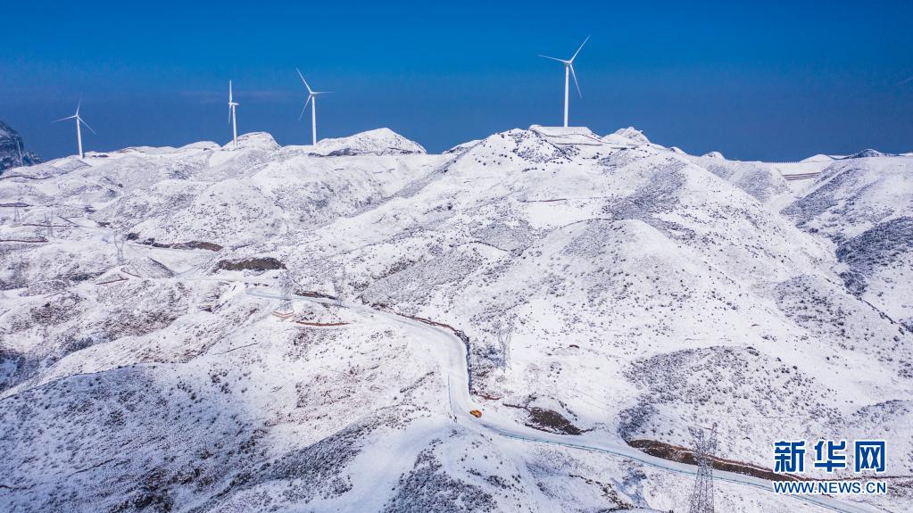 雪后的六盤水市盤州四格風電場(1月12日攝,無人機照片)。新華社記者 陶亮 攝