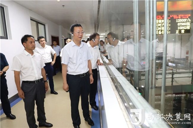 習(xí)酒考察團(tuán)一行參觀西鳳酒成品包裝車間
