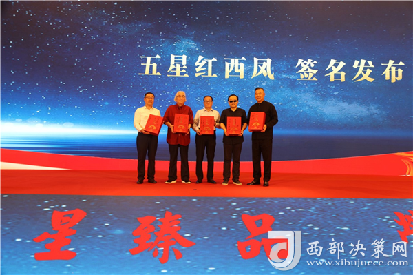 國(guó)務(wù)院首批特殊津貼專(zhuān)家、西北大學(xué)中國(guó)文明史研究院院長(zhǎng)孫皓暉,陜西師范大學(xué)歷史文化學(xué)院教授、博士生導(dǎo)師于賡哲,陜西省工信廳原副巡視員、陜西省輕工業(yè)協(xié)會(huì)原會(huì)長(zhǎng)張鑒,西鳳集團(tuán)公司黨委書(shū)記、董事長(zhǎng),股份公司董事長(zhǎng)張正,陜西禧福祥商貿(mào)有限公司董事長(zhǎng)王延安共同上臺(tái)為五星紅西鳳簽名,宣告五星紅西鳳正式上市發(fā)布,西鳳酒的高端化之旅再上新臺(tái)階。
