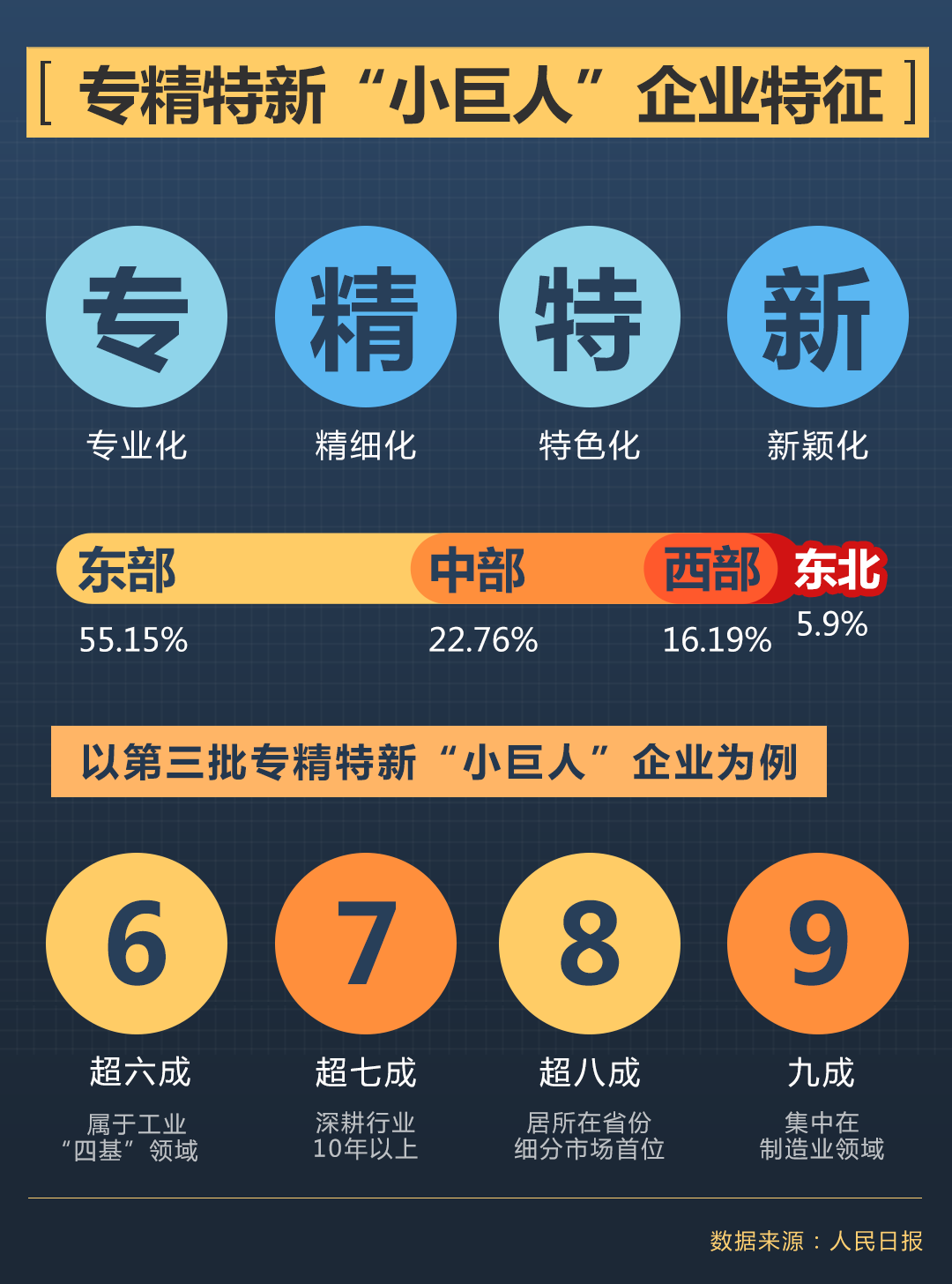 聚焦實業(yè),做精主業(yè)。第三批入選企業(yè)呈現(xiàn)出“6789”的特點:超六成屬于核心基礎元器件、關鍵基礎材料、先進基礎工藝、產業(yè)技術基礎領域,超七成深耕行業(yè)10年以上,超八成居所在省份細分市場首位,九成集中在制造業(yè)。