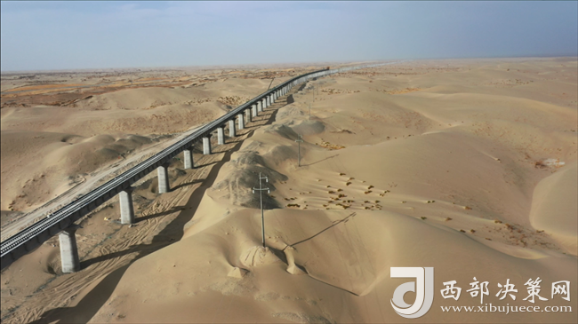 西部決策網(wǎng)訊 9月27日上午,在新建和田至若羌鐵路新疆民豐縣境內(nèi)段的施工現(xiàn)場,隨著直鋪機(jī)將最后60米鋼軌推進(jìn)落地,由中鐵第一勘察設(shè)計院集團(tuán)有限公司總體勘察設(shè)計的和若鐵路宣告鋪軌完成,標(biāo)志著世界上首條環(huán)沙漠鐵路正式閉環(huán)。