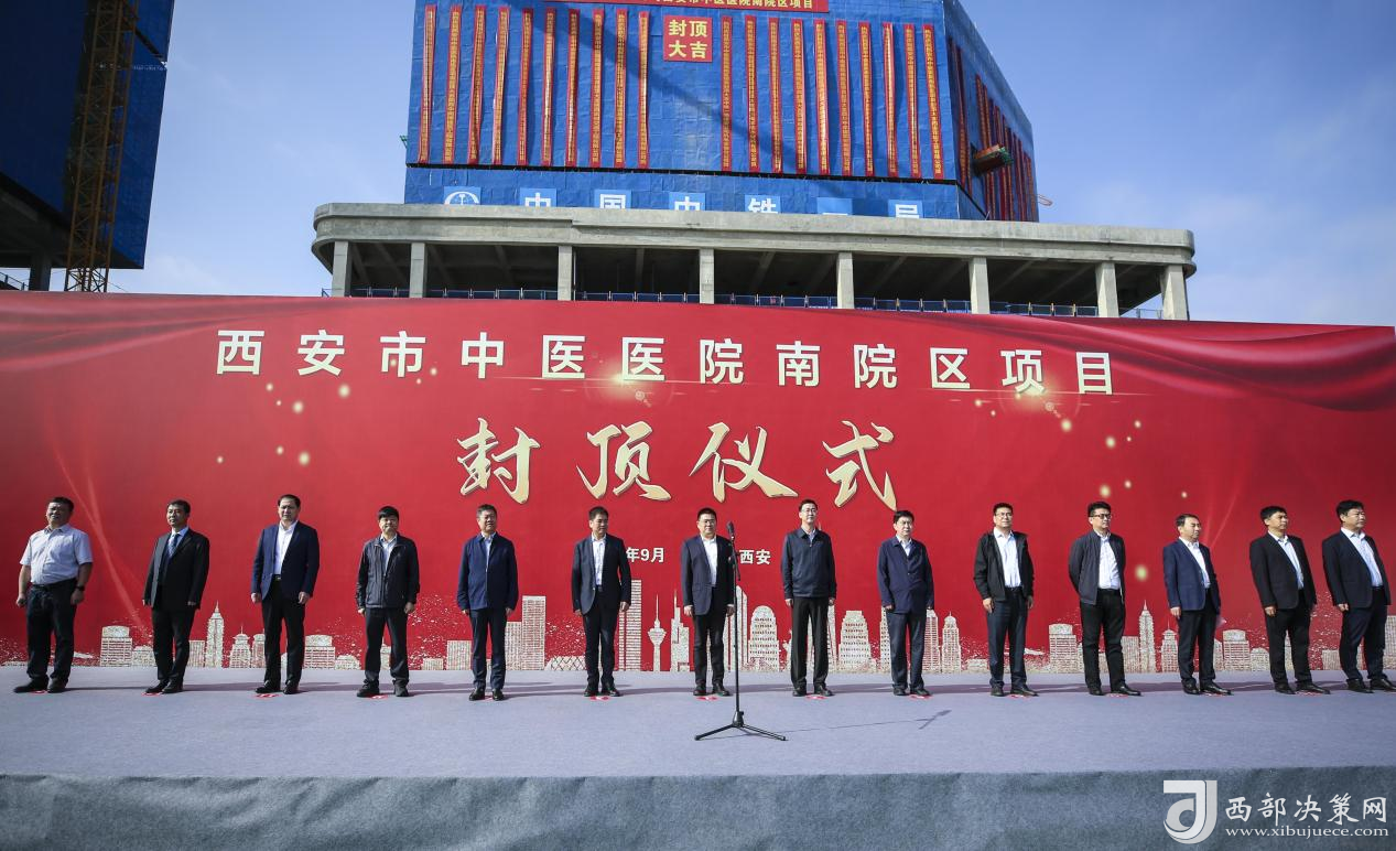 來自西安市政府,陜西省中醫(yī)藥管理局,市相關(guān)部門、長安區(qū)委區(qū)政府有關(guān)負責(zé)同志,以及市中醫(yī)醫(yī)院、中鐵一局建安公司等建設(shè)、施工單位人員100余人參加了封頂儀式。