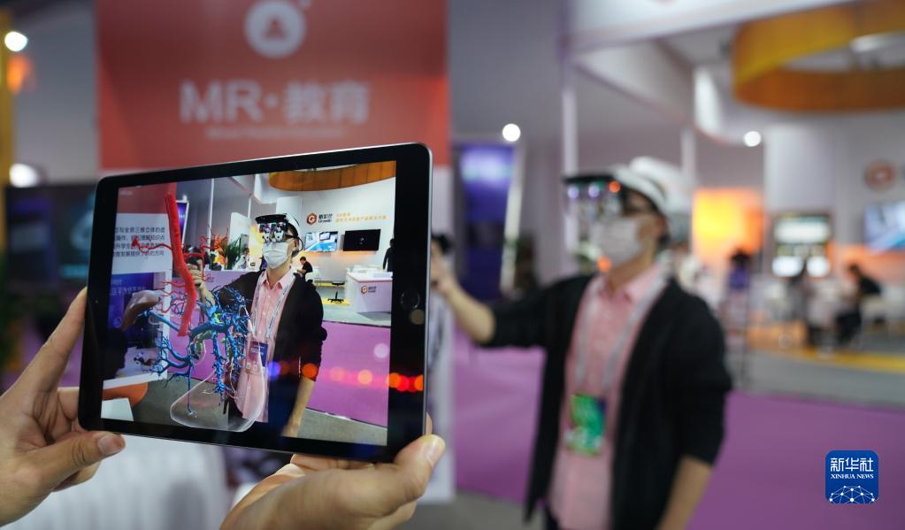 2020年10月19日,2020世界VR產(chǎn)業(yè)大會云峰會在江西省南昌市開幕,這是觀眾在大會VR/AR產(chǎn)品和應(yīng)用展覽會上體驗(yàn)“MR交互系統(tǒng)”在醫(yī)務(wù)教學(xué)上的應(yīng)用。新華社記者 胡晨歡 攝