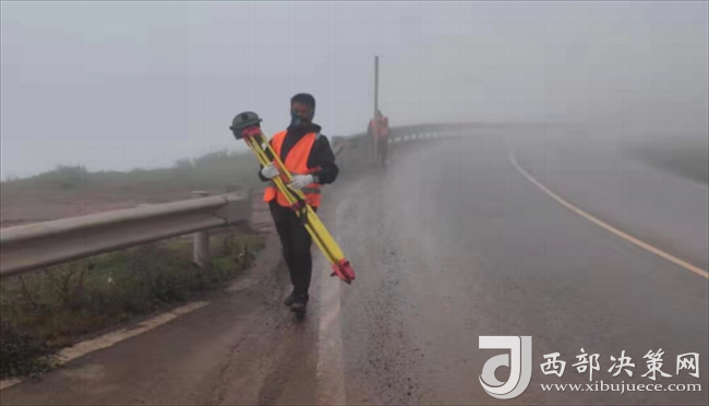 在進(jìn)行二等水準(zhǔn)測(cè)量時(shí),進(jìn)出口聯(lián)測(cè)距離為50千米,不僅要面對(duì)國(guó)道上龐大的車(chē)流量,還要面對(duì)盤(pán)山路的大坡度、大霧的低能見(jiàn)度、突然來(lái)襲的雨雪天氣以及雨雪過(guò)后的低溫。二等水準(zhǔn)的測(cè)量方式是步行,因?yàn)槭歉咴?,所以體力消耗特別大,山里又沒(méi)有吃飯的地方,大家只能靠隨身攜帶的面包、開(kāi)水保證體能。然而即使面對(duì)如此困難的環(huán)境,大家依然不忘初心,按時(shí)完成了復(fù)測(cè)任務(wù)。