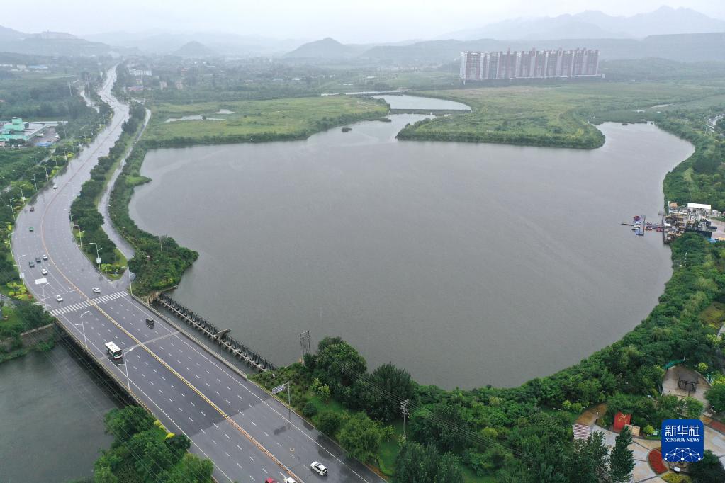 這是遼寧省鞍山市高新區(qū)火炬廣場(chǎng)前的南沙河水域(8月20日攝,無(wú)人機(jī)照片)。 新華社記者 姚劍鋒 攝