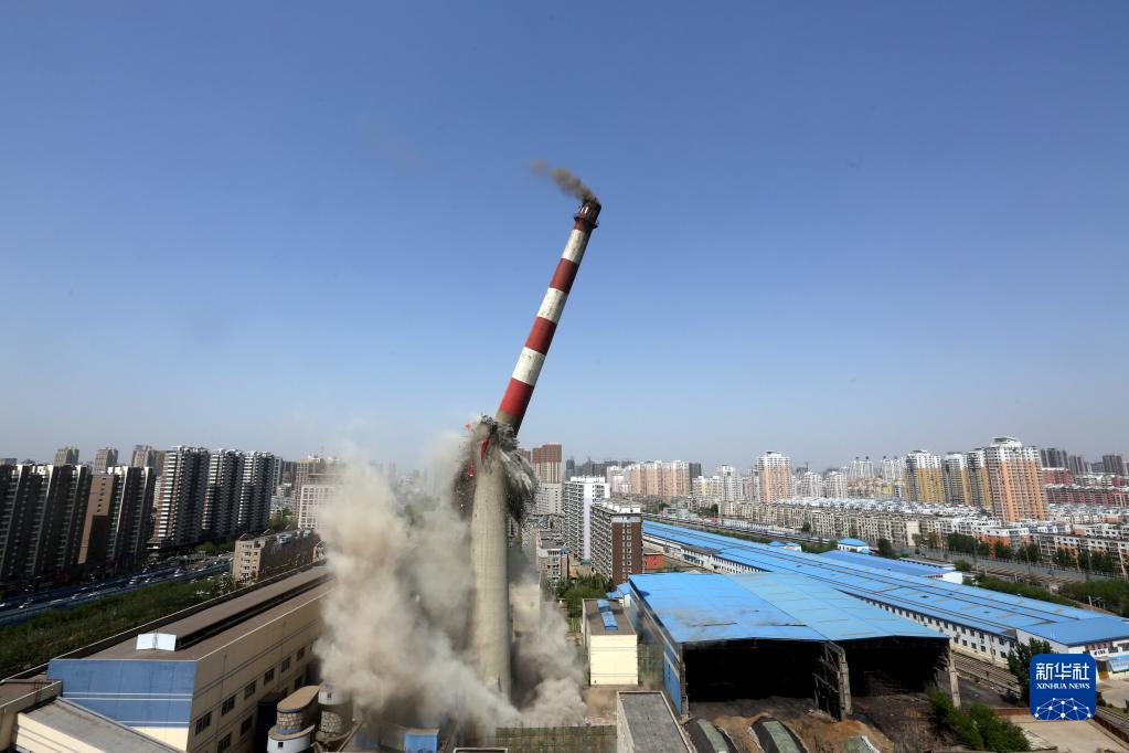 位于沈陽(yáng)市北一路的一座150米高大煙囪爆破成功(2014年4月28日攝)。 新華社記者 姚劍鋒 攝