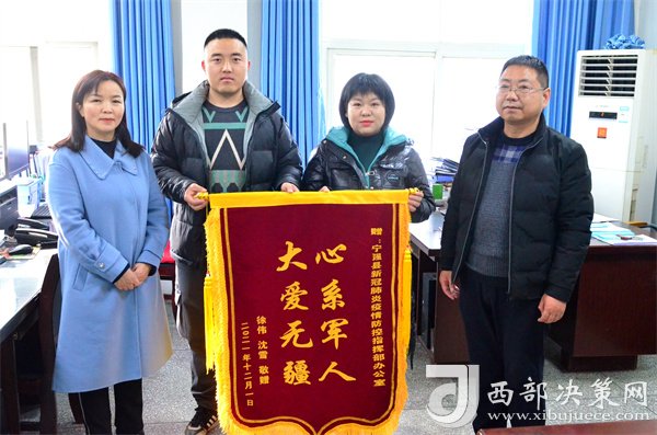 西部決策網(wǎng)訊“我能夠與家人團(tuán)圓,能夠照顧我的妻子和母親,能夠見到剛出生不久的孩子,給你們添了不少麻煩,真的太感謝你們了!”12月1日下午,在四川綿陽(yáng)某部隊(duì)服役回家探親、家住寧強(qiáng)縣漢源街道辦二道河社區(qū)的徐偉與他的妻子及姐姐一同來(lái)到縣疫情防控辦,將一面印有“心系軍人 大愛無(wú)疆”的錦旗送到工作人員的手中時(shí)激動(dòng)地說(shuō),“你們?cè)诎倜χ心転槲覀冎耄銈兪侨娜鉃槿嗣穹?wù)的好干部……我們制作了一面錦旗略表一下謝意,請(qǐng)收下!”