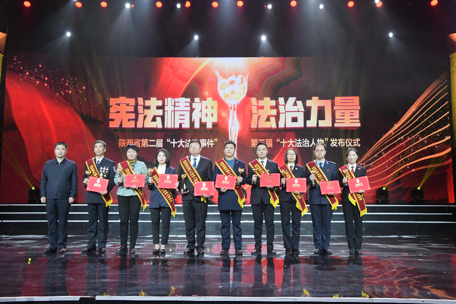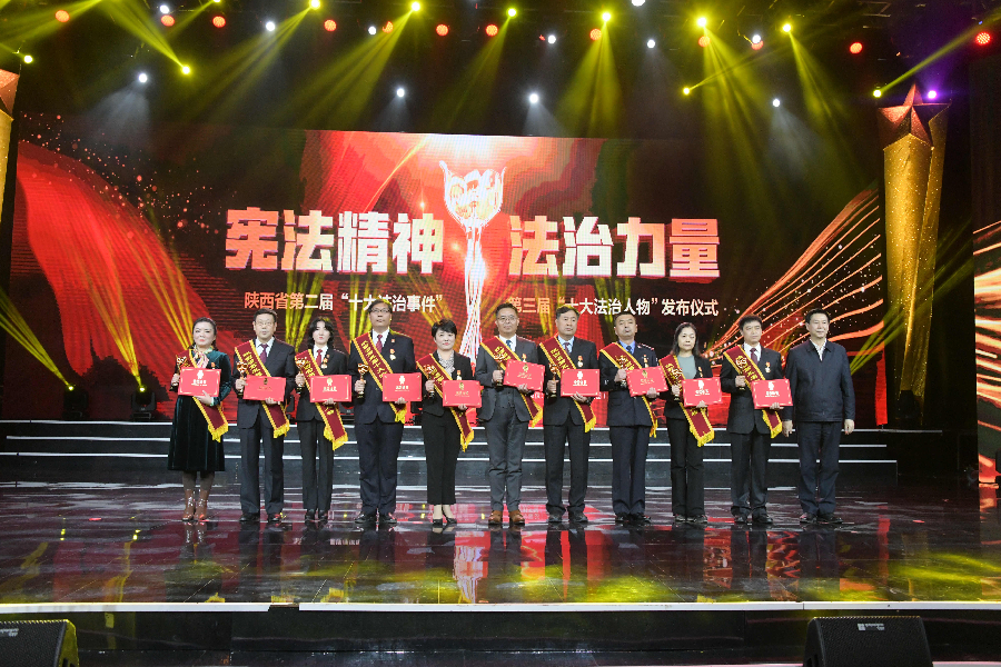 發(fā)布儀式現(xiàn)場播放了“十大法治事件”“十大法治人物”及提名獎的先進(jìn)事跡短片,揭曉了陜西省第二屆“十大法治事件”、第三屆“十大法治人物”及提名獎獲得者。“全國首創(chuàng)黨委(黨組)書記點(diǎn)評法治工作機(jī)制切實(shí)夯實(shí)‘一把手’履行法治建設(shè)責(zé)任”等10個事件被評為第二屆“十大法治事件”、“陜西出臺自由貿(mào)易試驗區(qū)條例助推自貿(mào)區(qū)高質(zhì)量發(fā)展”等10個事件被評為第二屆“十大法治事件”提名獎,西安交通大學(xué)法學(xué)院二級教授馬治國等10名同志被評為第三屆“十大法治人物”、咸陽市中級人民法院速裁中心主任李春麗等10名同志被評為第三屆“十大法治人物”提名獎。
