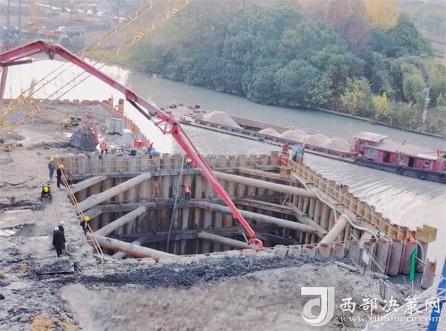 西部決策網(wǎng)訊12月7日,公司滬蘇湖鐵路項目全線最深的承臺基坑完成封底混凝土澆筑,標志著項目洞涇特大橋跨洞涇港Ⅵ級航道(60+100+60)米連續(xù)梁的施工全面展開。