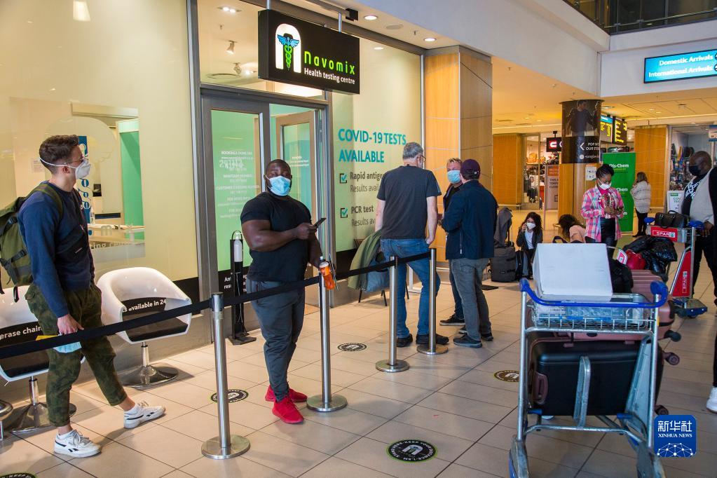 旅客在南非開普敦國(guó)際機(jī)場(chǎng)等待接受新冠病毒檢測(cè)(2021年11月29日攝)。為防范新冠變異病毒奧密克戎毒株傳播,多國(guó)對(duì)南非等非洲國(guó)家的航班和旅客實(shí)施入境限制,并升級(jí)防控措施。新華社發(fā)(弗克攝)