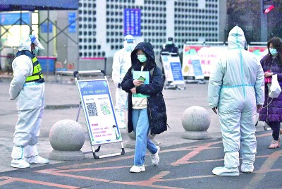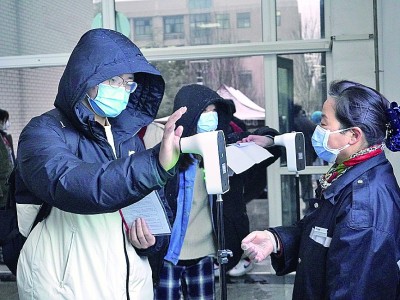 12月25日,考生在西安石油大學(xué)考點(diǎn)測溫。趙喜軍攝/光明圖片