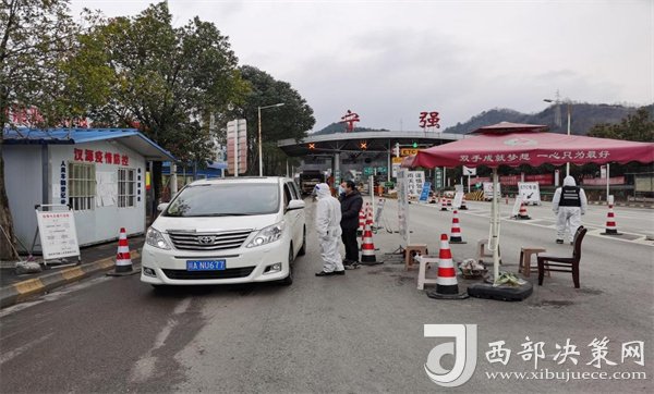 工作人員在縣城南門高速路口健康服務(wù)點(diǎn)查驗(yàn)車輛及人員
