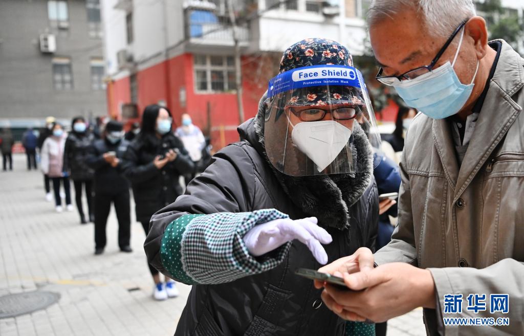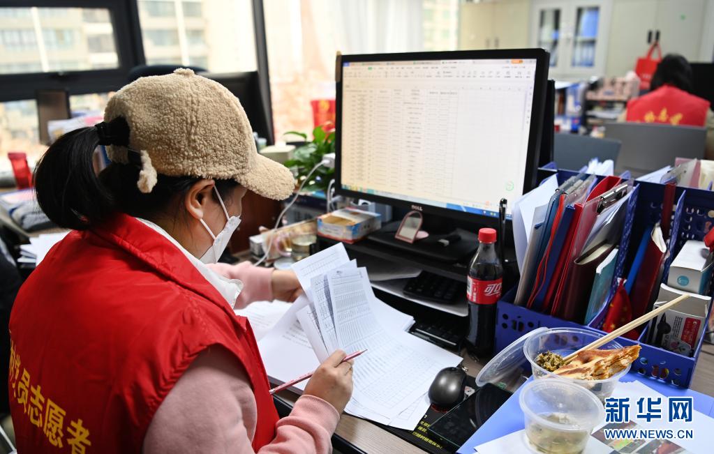 12月27日,志愿者尹鵬在核查社區(qū)居民核酸采樣情況。新華社記者 陶明 攝