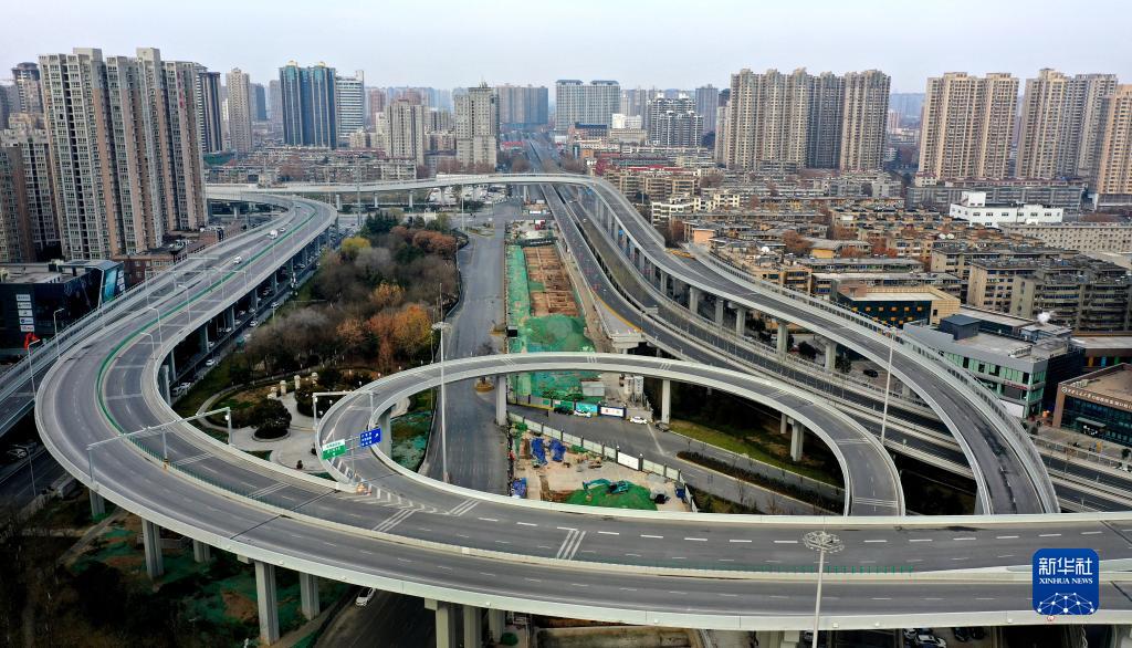 12月28日拍攝的西安市南二環(huán)一處立交橋(無人機照片)。新華社記者 陶明 攝