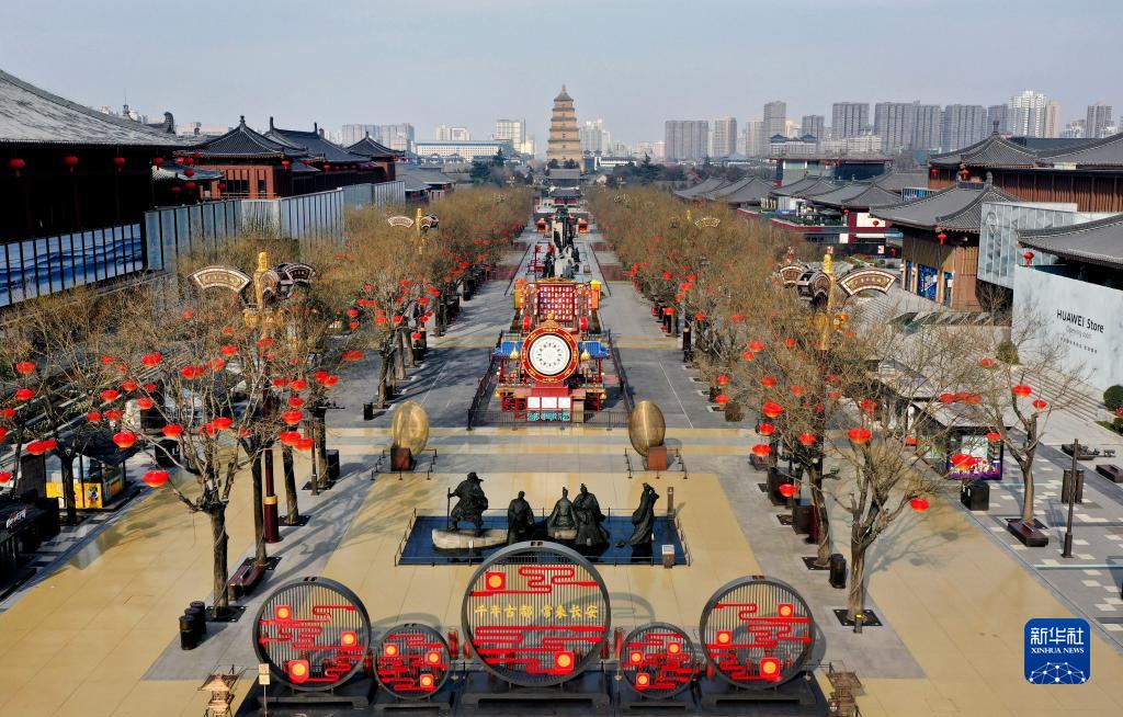 12月28日拍攝的西安市大唐不夜城(無人機照片)。新華社記者 陶明 攝