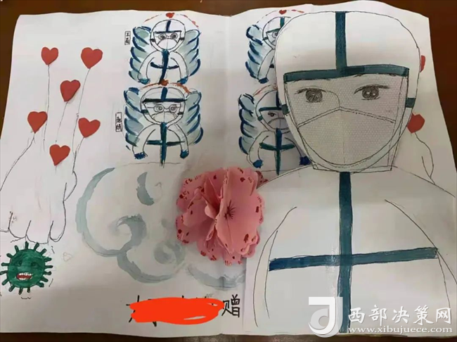 12月13日23時(shí),第一例患者收住隔離病區(qū)?;純喝朐簳r(shí)全身感染,癥狀重,精神狀況差,哭鬧拒絕吃藥。為了安撫孩子焦慮情緒,隔離病區(qū)醫(yī)護(hù)人員輪流進(jìn)入病房,陪患兒玩耍,科室安排專人,購買孩子需要的跳繩、皮筋、折紙、水果等生活用品,功夫不負(fù)有心人,經(jīng)過醫(yī)護(hù)人員耐心、細(xì)心地陪伴,孩子的情緒逐漸平靜下來,并積極配合治療,患兒最終診斷為“急性化膿性扁桃體炎、流行性感冒、急性支氣管炎”。三天后,體溫恢復(fù)正常,精神狀況明顯好轉(zhuǎn)。12月22日,患兒痊愈出院,為了表達(dá)感激之情,她動(dòng)手為隔離病區(qū)工作人員送上自己精心做的一幅手工畫,向科室醫(yī)護(hù)人員敬獻(xiàn)一面錦旗。