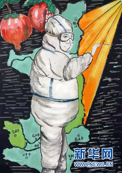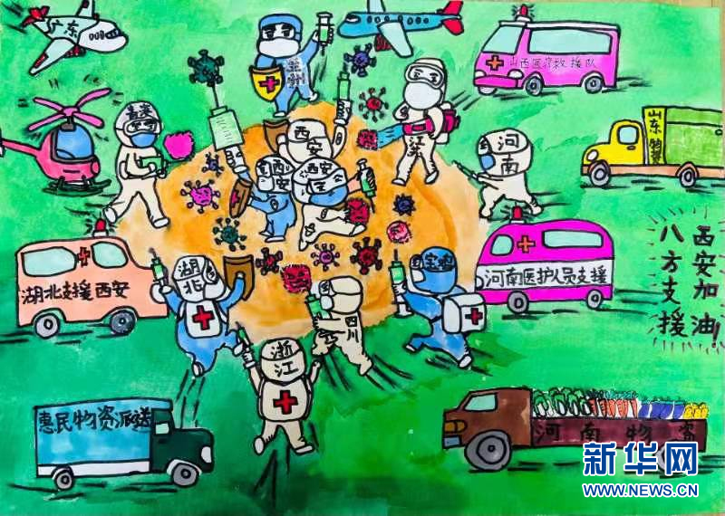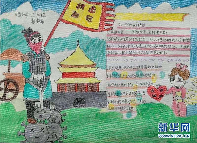 1月2日,西安市鄠邑區(qū)甘亭中心學校的孩子們用最自己的方式宣傳居家防疫知識,用手中的畫筆表達他們對抗疫英雄的贊美,為抗疫一線的英雄加油!為西安加油?。◤埶妓?趙影超 王展榮)