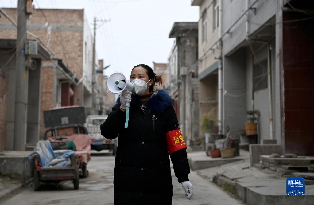 1月7日,西安市未央?yún)^(qū)西唐寨村志愿者在村里巡邏,對未居家的群眾進(jìn)行勸返。