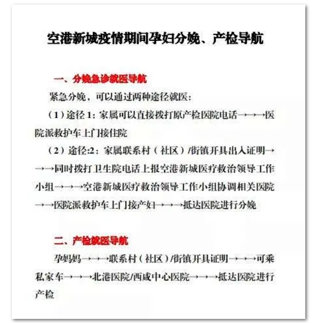 為了便于孕媽媽們更系統(tǒng)的了解就診流程,胡偉超還會同北杜衛(wèi)生院吳新雷,醫(yī)療救治工作領導小組張亮、呂琳連夜制作了《空港新城疫情期間孕婦分娩、產檢導航》,詳細介紹各類情況的流程。