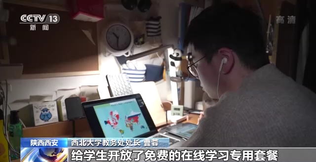 西北大學(xué)教務(wù)處處長(zhǎng) 曹蓉:我們擔(dān)心網(wǎng)絡(luò)卡頓,西北大學(xué)的信息化處充分挖掘網(wǎng)絡(luò)資源,擴(kuò)容了帶寬,給學(xué)生開(kāi)放了免費(fèi)的在線學(xué)習(xí)專用套餐。