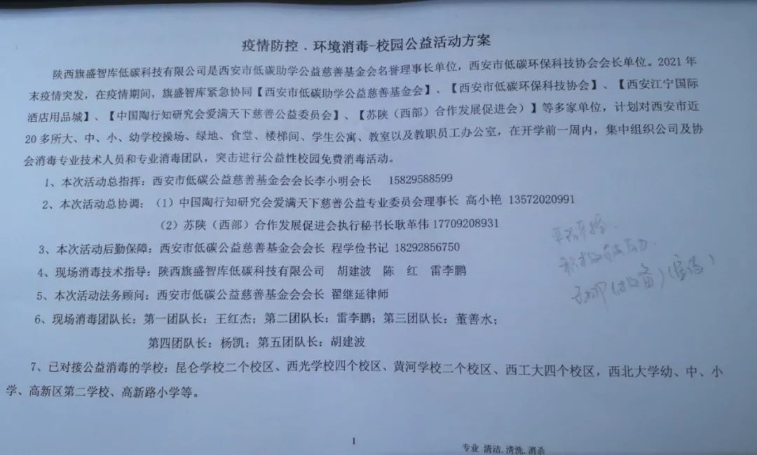 疫情突發(fā)之初,各學校相繼停課,促進會便與中國陶行知研究會愛滿天下慈善公益專業(yè)委員會理事長高小艷聯(lián)合相關單位,計劃組織專業(yè)消毒團隊,對西安20多所大、中、小學校園進行公益消殺活動。政華國際會展總經(jīng)理崔向陽第一時間便購買了外科醫(yī)用口罩12000只,準備屆時捐贈給相關學校。執(zhí)行秘書長耿革偉第一時間聯(lián)系多個相關部門,積極爭取欲完成此項公益活動。無奈因疫情爆發(fā),小區(qū)封控難以外出,口罩滯留高陵,不能及時提貨,此舉暫時未能及時實施,但仍要為我會創(chuàng)會主席高小艷和崔向陽兩位同志的愛心之舉點贊,并表示衷心感謝!