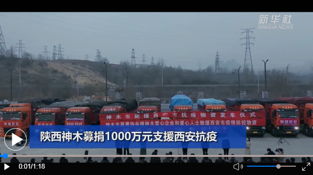為了支援西安市疫情防控工作,陜西省神木市于1月3日發(fā)起募捐活動,全市愛心企業(yè)和愛心人士積極響應(yīng)參與,共募集善款1000萬元。神木市用部分善款采購了緊缺生活物資和防疫物資,并向陜西省慈善協(xié)會捐款361.3萬元。8日凌晨,滿載抗疫物資的11輛貨車抵達西安。