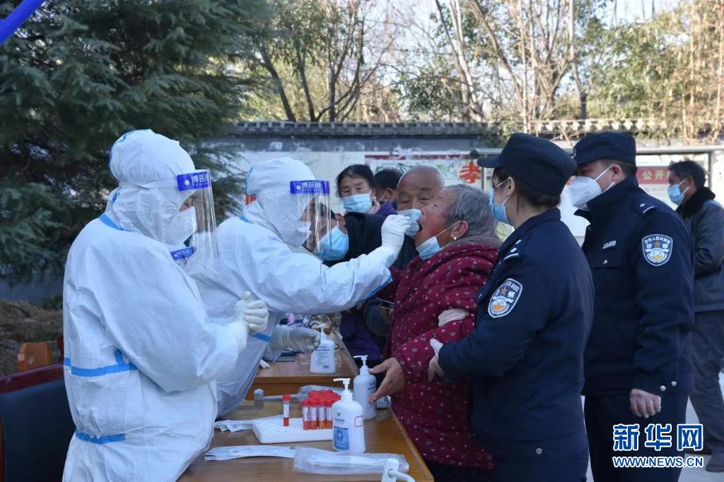 秦嶺腳下,西安市周至縣,雪一場比一場厚,四屯鎮(zhèn)渭永村,核酸檢測正在進行。