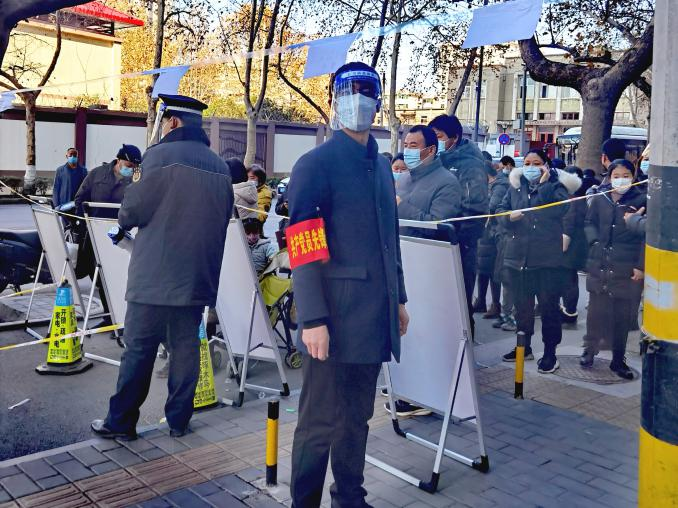 自從12月21日至今,王曉軍幾乎天天深入抗疫一線,以志愿者的身份助力抗疫,從未休息過一天,什么工作都干過,上門核實(shí)業(yè)主家里的人員情況,最近是否都做了核酸,綠碼顯示情況,是否還出去上班,是否有生活困難等等一系列繁瑣細(xì)微的工作,作為總經(jīng)理他在公司運(yùn)籌帷幄,雷厲風(fēng)行,而在這里,他俯首甘為孺子牛,輕輕地敲開萬戶門,耐心詢問,認(rèn)真登記,毫無差漏。小區(qū)巡查時(shí),勸導(dǎo)業(yè)主回家不要下樓,遇到家里有生活方面困難的業(yè)主時(shí),了解情況后勸導(dǎo)回家等侯,然后聯(lián)系物業(yè)或社區(qū)或民警協(xié)調(diào)處理,給業(yè)主回復(fù)。小區(qū)門口值班時(shí),對進(jìn)出人員嚴(yán)加詢問,除防疫工作人員及民生保障人員持身份證、單位證明、疫情防控指揮部辦公室的證明人員外,一律不許出入,對門口交接生活保障物資的人員,通過專用通道,保持3米距離,并對物品進(jìn)行嚴(yán)格酒精消殺,杜絕出現(xiàn)交叉感染。核酸篩查現(xiàn)場維護(hù)秩序時(shí),看到年邁的老者,就主動(dòng)向前扶一把,幫助老人提前插隊(duì)做;遇到打不開綠碼的,就親自幫人操作;遇到間距拉近的就讓他們分開......一天下來嗓子都喊啞了,從21日開始至今,一共進(jìn)行了10輪核酸篩查,他從未缺崗。防護(hù)服不透氣,身上一會兒熱一會兒冷,自己本來就戴著一副眼鏡,再加上一個(gè)面罩,外寒內(nèi)熱,眼睛一整天都是模糊的,一天下來腰酸背痛,何況天天如此。在數(shù)九寒天,在危險(xiǎn)面前如果沒有一種精神力量做支撐,普通人恐怕一天也難以堅(jiān)持。我也做過志愿者,穿過傳說中的防護(hù)服,僅僅五個(gè)小時(shí)我都快崩潰了,幸好工作結(jié)束,否則我可能要請假了,所以我感同身受志愿者的艱辛和不易。