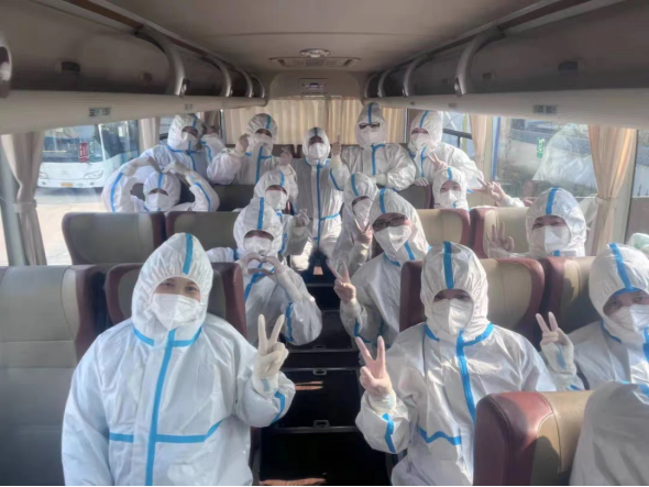 扶風(fēng)縣中醫(yī)醫(yī)院張艷艷,張會艷,馬字香,鄧文燕,朱曉敏,董曉麗,鄧乃妮,陳永會,程鵬娟,呂佩娟,王萍,孫靜靜,劉娟娟,劉鑫鑫,白珍共15名護(hù)士接到通知后,在短短30分鐘內(nèi)緊急集合完畢。這支緊急抽調(diào)的隊(duì)伍由70后的護(hù)士長、80后的資深護(hù)士、90后的臨床護(hù)理骨干組成;參加抗疫人員有的家里有面臨高考的孩子、有的還需照顧的年幼的孩子和年邁的老人;接到任務(wù),我們顧不了那么多,大家放下兒女情長、放下孝順慈愛,迎著寒風(fēng),穿上“白衣鎧甲”,短暫與家人告別后,奮不顧身的奔赴西安疫情防控的第一線。