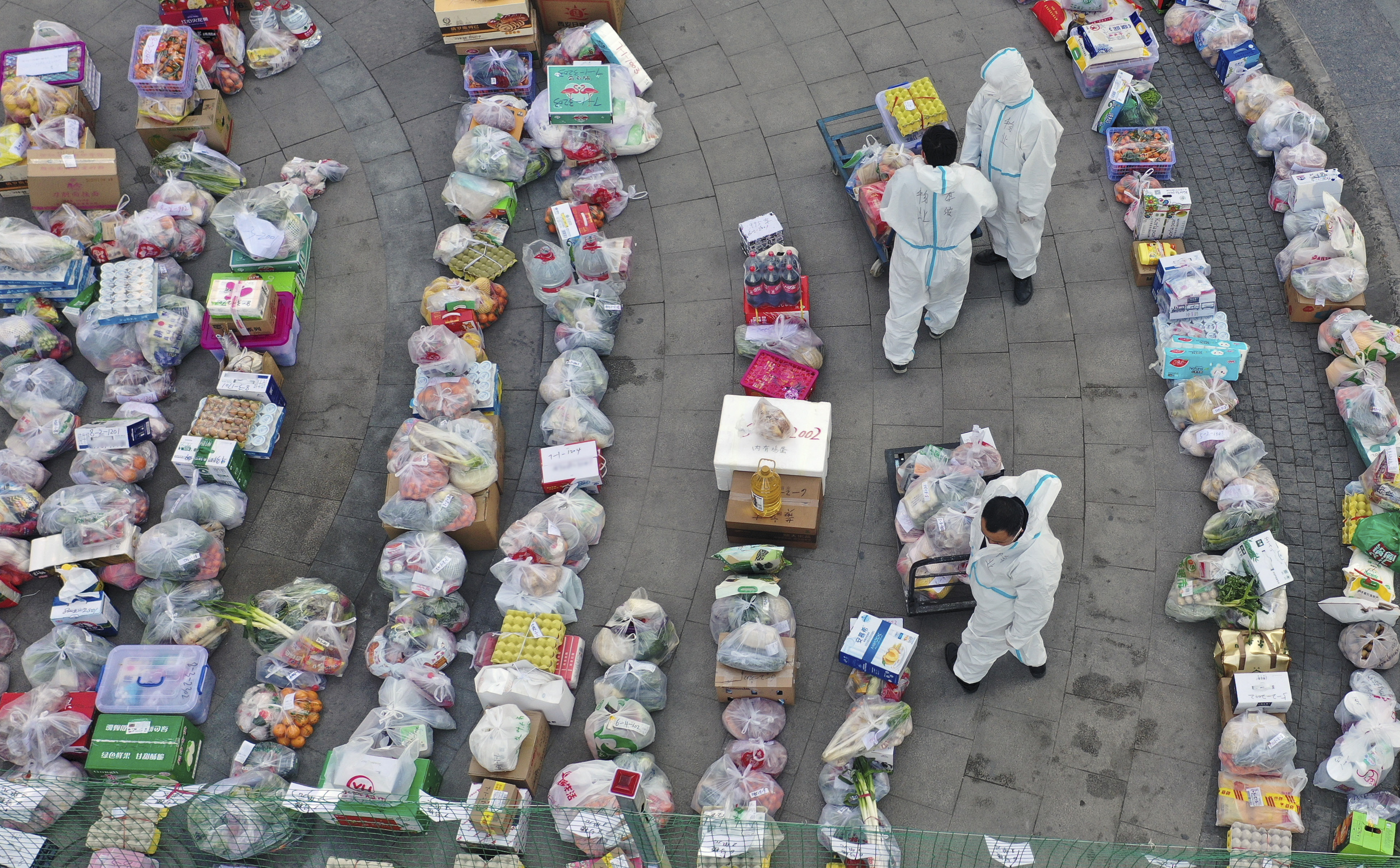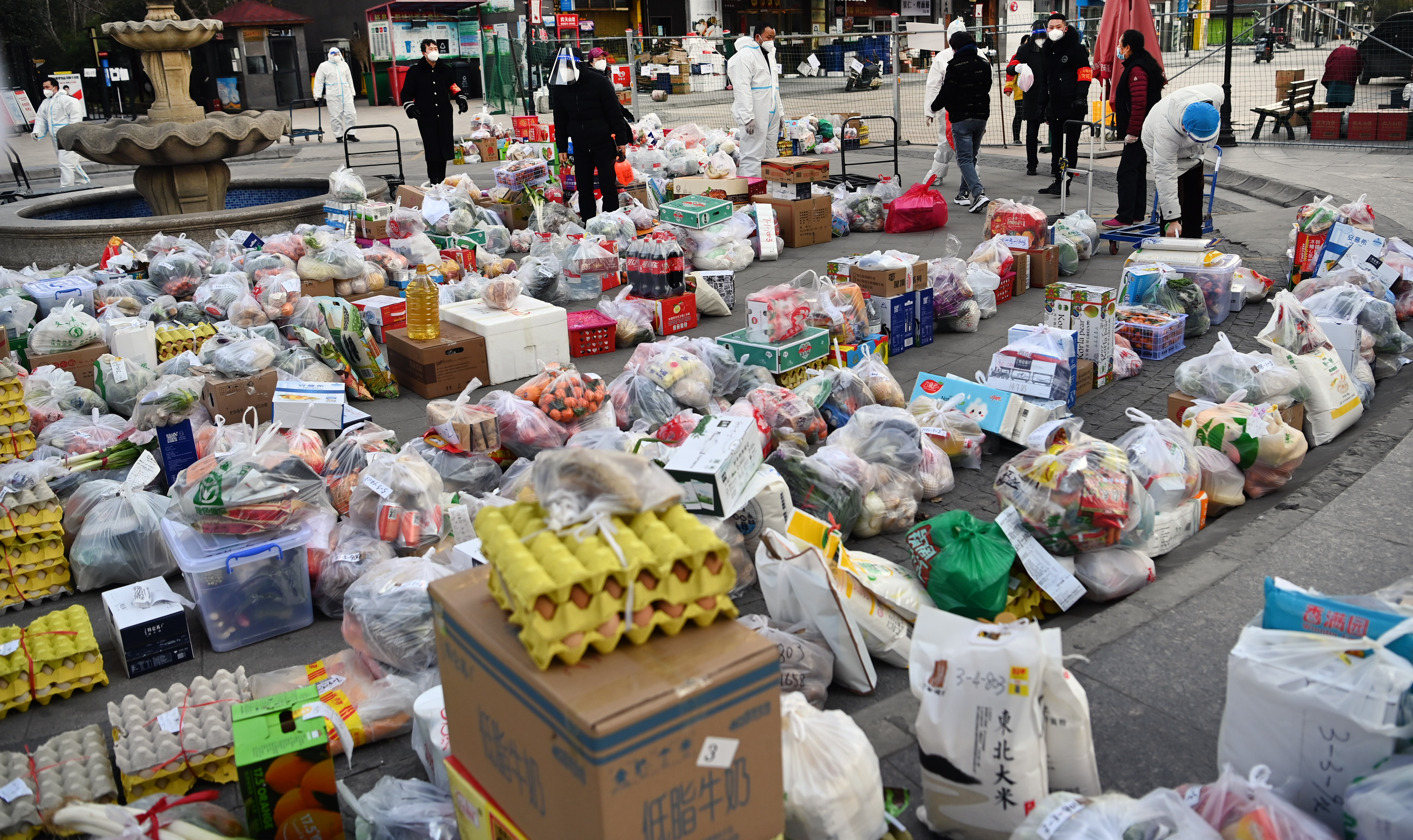 西安市雁塔區(qū)電子城街道裕昌太陽城社區(qū)是一個擁有2700多戶居民的封控區(qū)域。為保障居民生活,負責(zé)這里的20名各級下沉干部、近百名志愿者,夜以繼日將居民線上購買的生活物資運送到每家每戶。