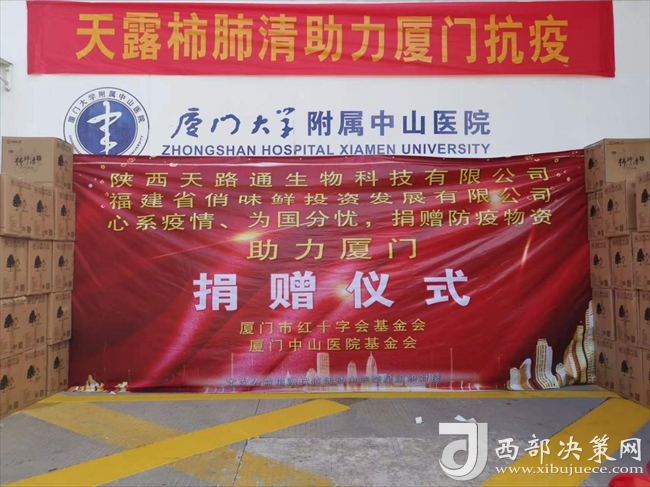 而這也并不是“天露柿肺清”口服液第一次出現(xiàn)在抗疫第一線。早在2021年9月29日,陜西天路通生物科技有限公司就為廈門中山醫(yī)院捐獻過一批抗疫物資,捐贈了價值20多萬“天露柿肺清”口服液作為抗疫物資,支援中山醫(yī)院的一線醫(yī)護人員們,助力廈門抗疫。當時正值廈門中山醫(yī)院抗擊新冠肺炎疫情的緊要關(guān)頭,天路通生物科技有限公司及時伸出援助之手,無償捐贈抗疫物資,為打贏疫情防控阻擊戰(zhàn)增強了信心和力量。病毒無情,八方友愛,仁者愛人,彰顯出企業(yè)的愛國情懷和社會責任,展現(xiàn)了人間大愛,脈脈溫情。