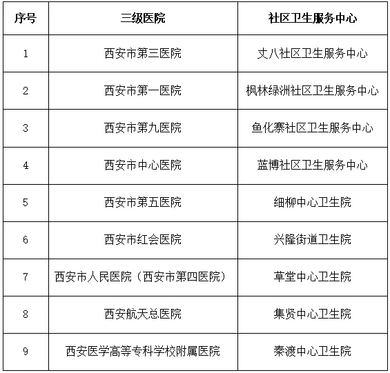 指定市屬三級醫(yī)院9家,對口支援高新區(qū)9個社區(qū)衛(wèi)生服務(wù)中心(或鄉(xiāng)鎮(zhèn)衛(wèi)生院,下同)(對口支援關(guān)系見附件),簽訂對口支援協(xié)議,下派內(nèi)科、外科、婦產(chǎn)科醫(yī)務(wù)人員駐點社區(qū)衛(wèi)生服務(wù)中心坐診,另外由西安市兒童醫(yī)院、西安市中醫(yī)醫(yī)院向丈八社區(qū)衛(wèi)生服務(wù)中心、楓林綠洲社區(qū)衛(wèi)生服務(wù)中心、魚化寨社區(qū)衛(wèi)生服務(wù)中心、藍博社區(qū)衛(wèi)生服務(wù)中心派中醫(yī)醫(yī)師和兒科醫(yī)師,確保社區(qū)衛(wèi)生服務(wù)中心能順利開展基本診療工作。高新區(qū)要加強社區(qū)衛(wèi)生服務(wù)中心硬件建設(shè),配備必要的檢查、檢驗設(shè)備,確保能夠完成基本醫(yī)療所必需的檢查和檢驗項目。支援醫(yī)院與社區(qū)衛(wèi)生服務(wù)中心建立上下轉(zhuǎn)診關(guān)系,對超出社區(qū)衛(wèi)生服務(wù)中心診療能力的轉(zhuǎn)往上級醫(yī)院進一步診治,支援醫(yī)院應(yīng)采取預(yù)約門診、綠色通道或預(yù)留床位等方式做好支持。