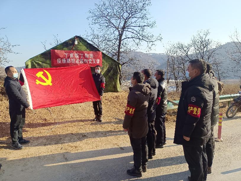 咸陽市長(zhǎng)武縣丁家鎮(zhèn)丁陶路疫情防控臨時(shí)黨支部黨員向黨旗宣誓。 趙輝 攝