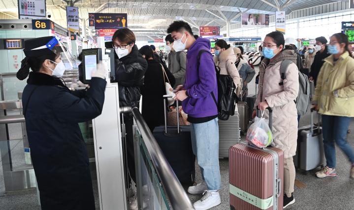1月16日,西安北客站,離校返鄉(xiāng)的西安高校學生在排隊進站。新華社記者 陶明 攝